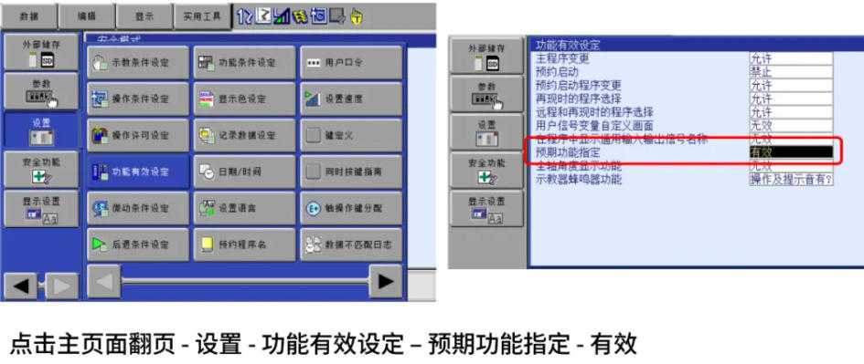 安川机器人的 “预期输出功能” 通常指通过机器人控制器的 I/O 信号、现场总线或专用指令,实现对外部设备(如抓手、 conveyor、焊接电源等)的控制输出,或向 PLC / 上位机反馈机器人状态(如运行中、就绪、报警等)。其设置需结合具体应用场景,核心是明确输出信号的逻辑、触发条件及关联设备的交互规则。