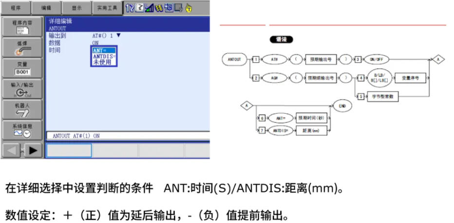 安川机器人的 “预期输出功能” 通常指通过机器人控制器的 I/O 信号、现场总线或专用指令,实现对外部设备(如抓手、 conveyor、焊接电源等)的控制输出,或向 PLC / 上位机反馈机器人状态(如运行中、就绪、报警等)。其设置需结合具体应用场景,核心是明确输出信号的逻辑、触发条件及关联设备的交互规则。 一、预期输出功能的核心类型二、设置步骤(以 DX200 控制器为例)1. 硬件与信号映射配置2. 输出逻辑与触发条件设置3. 参数与安全设置